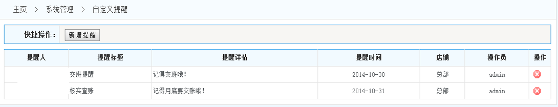 2.提醒列表:在提醒列表的操作一欄 可以對自定義的提醒進(jìn)行刪除操作