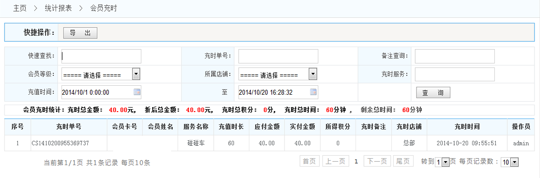2.會員充時統(tǒng)計:這里顯示了本店鋪的充時概況